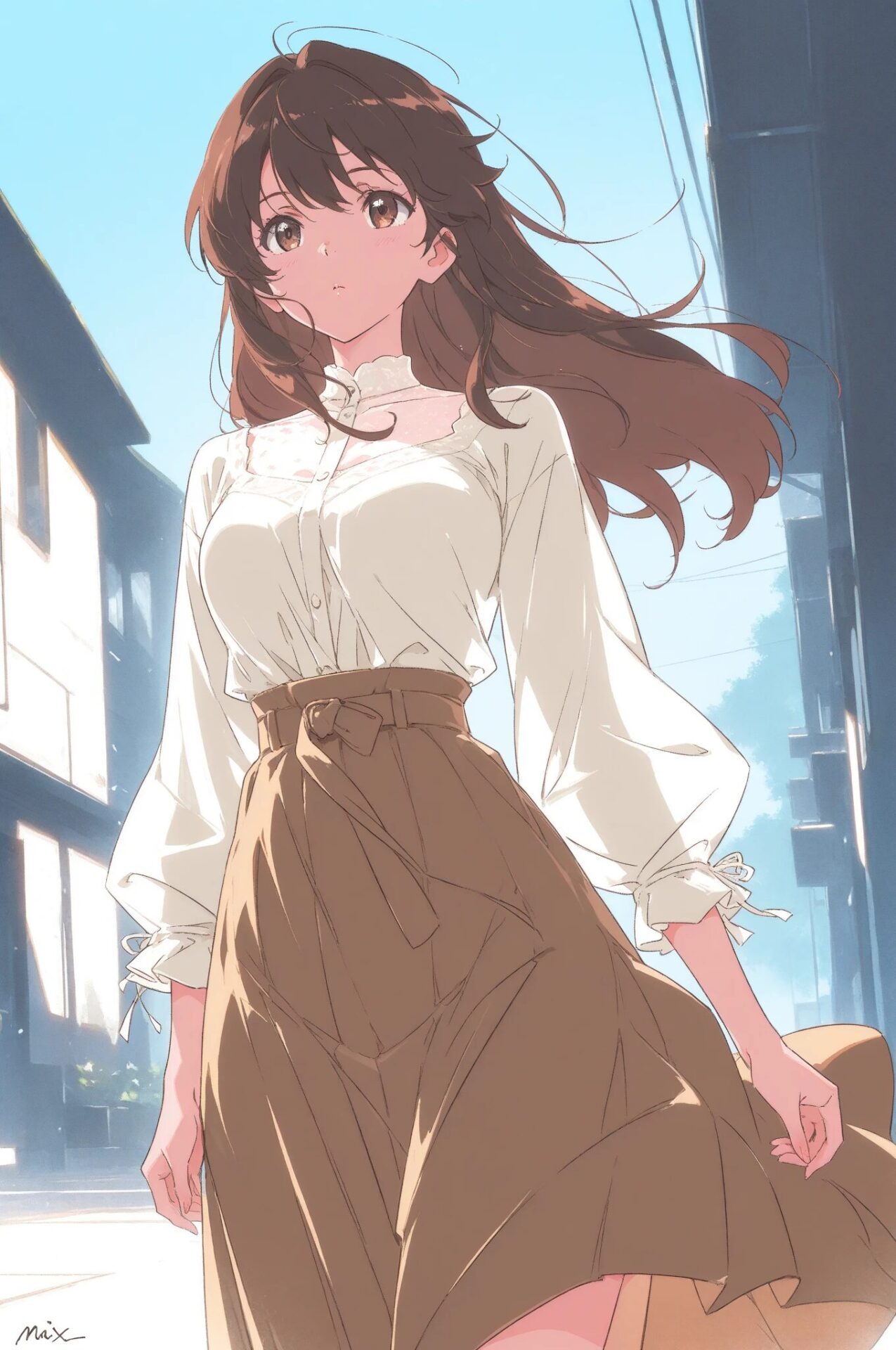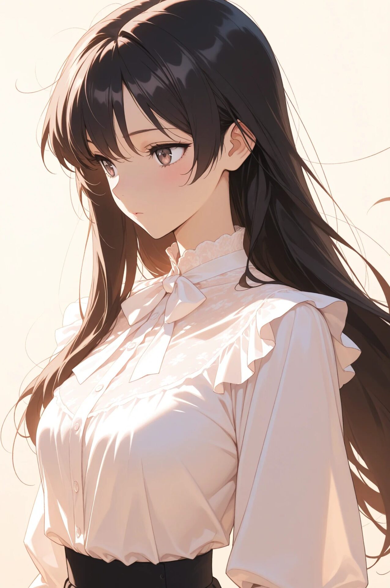 1girl, spring outfit, pastel blouse, pleated skirt, light cardigan, cherry blossom background