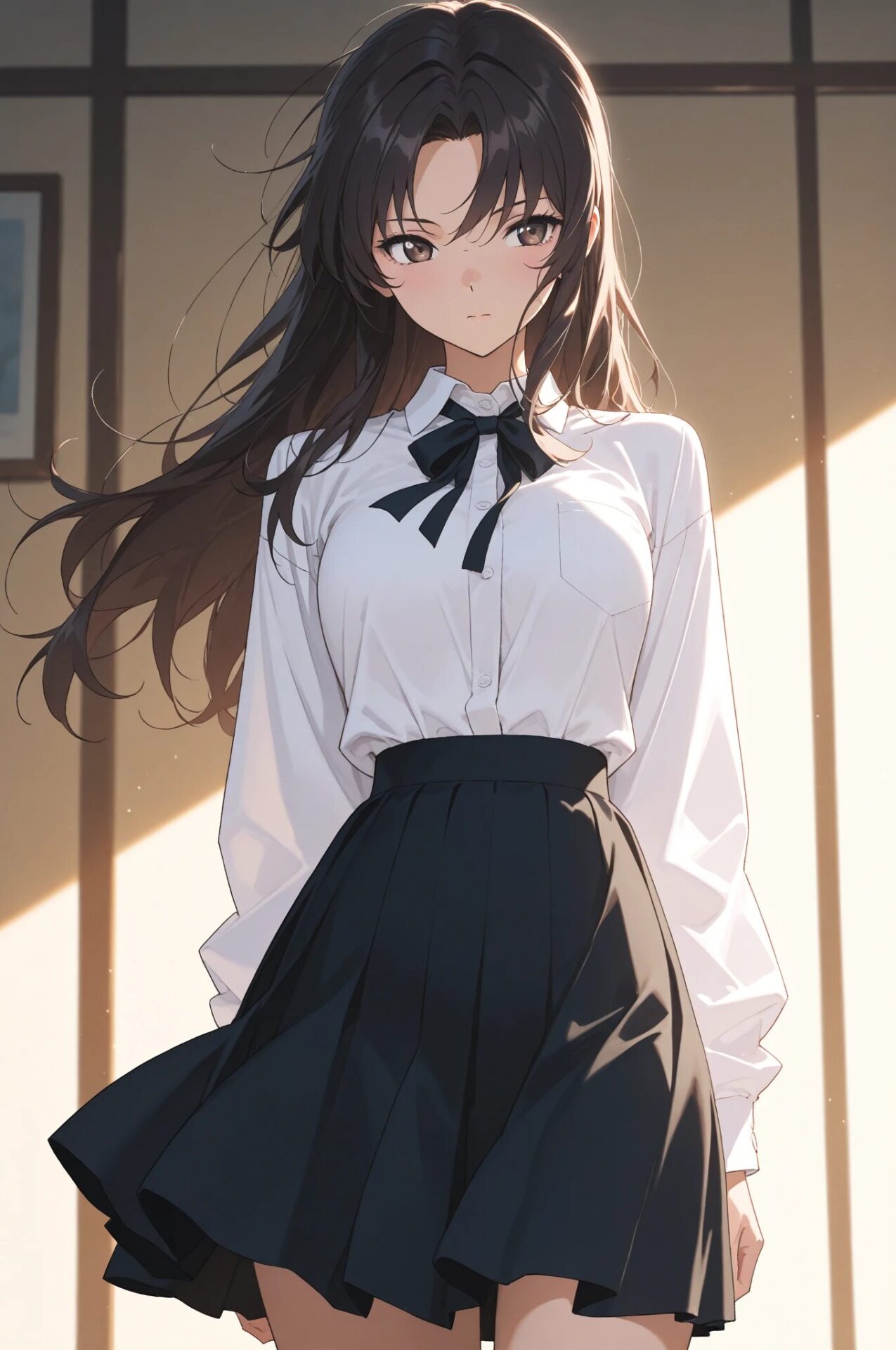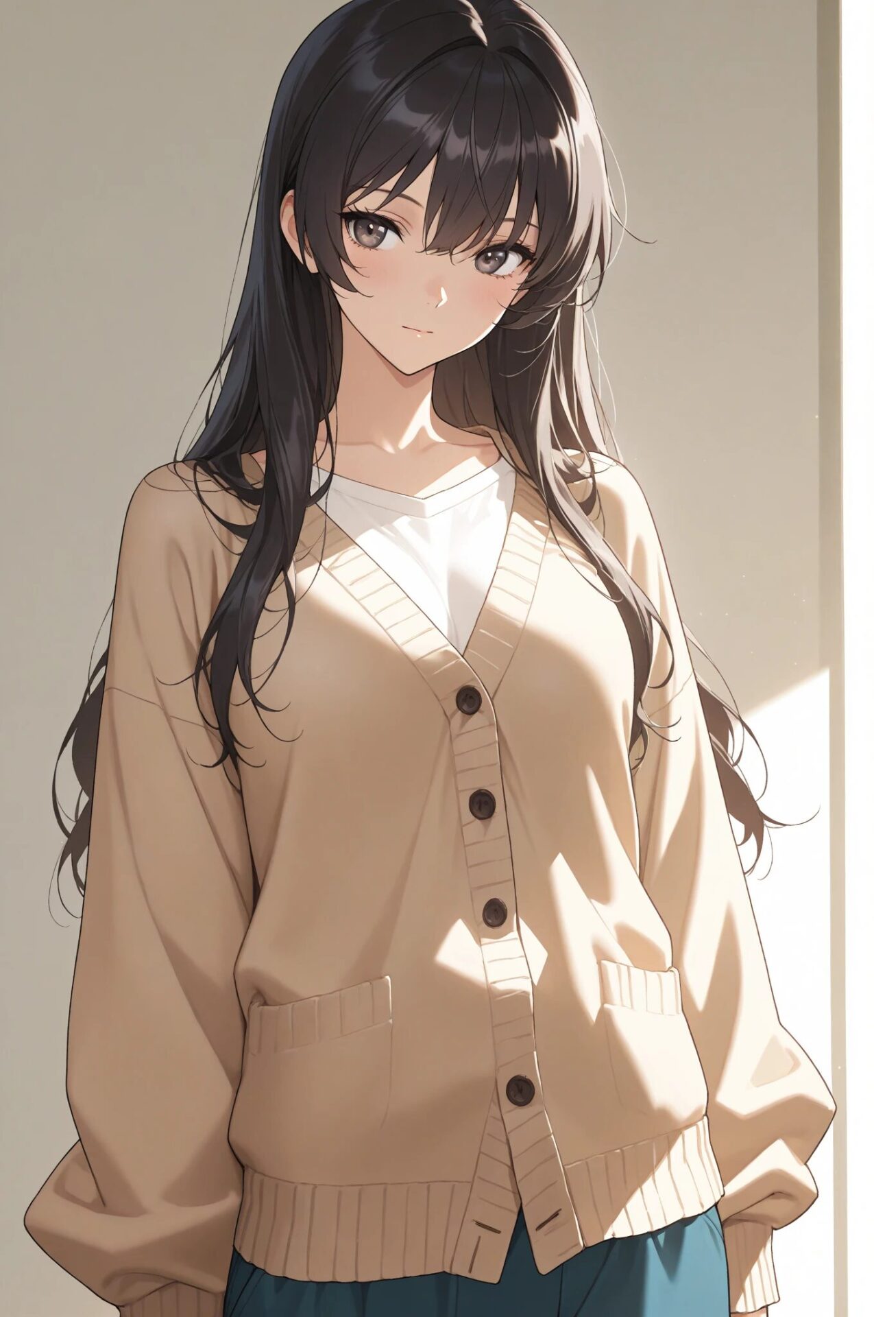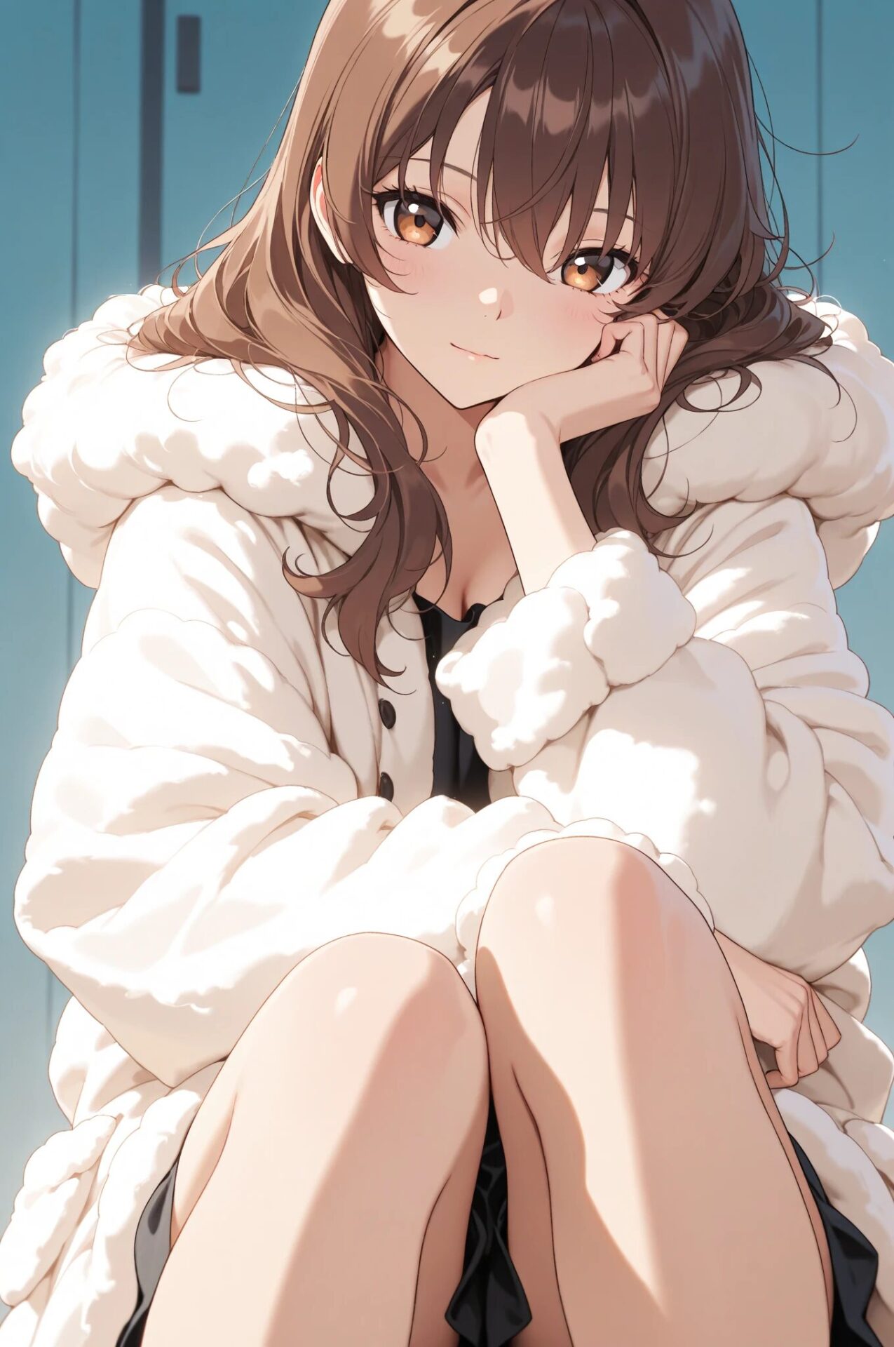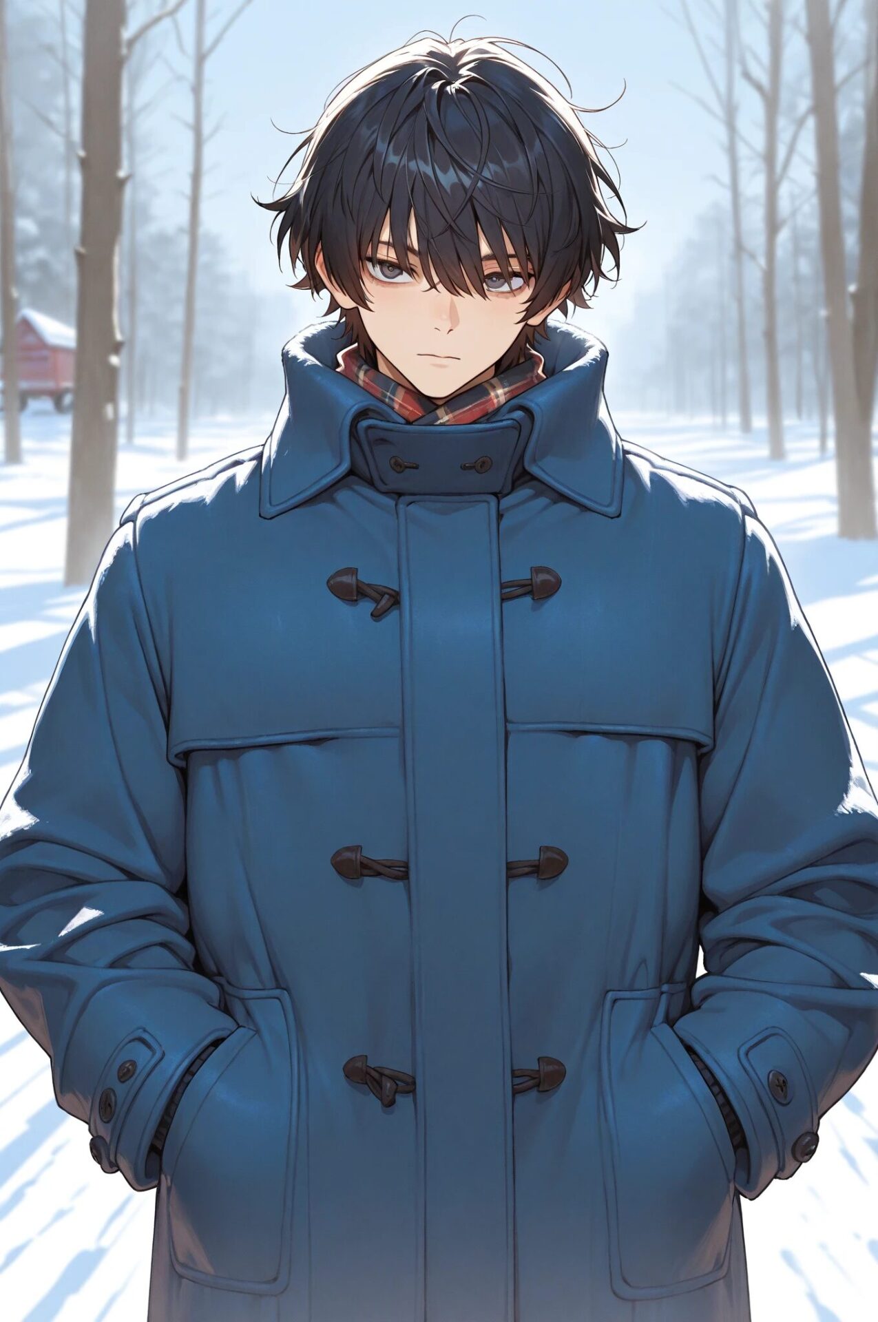 1girl, winter outfit, long coat, turtleneck sweater, snowing, soft lighting