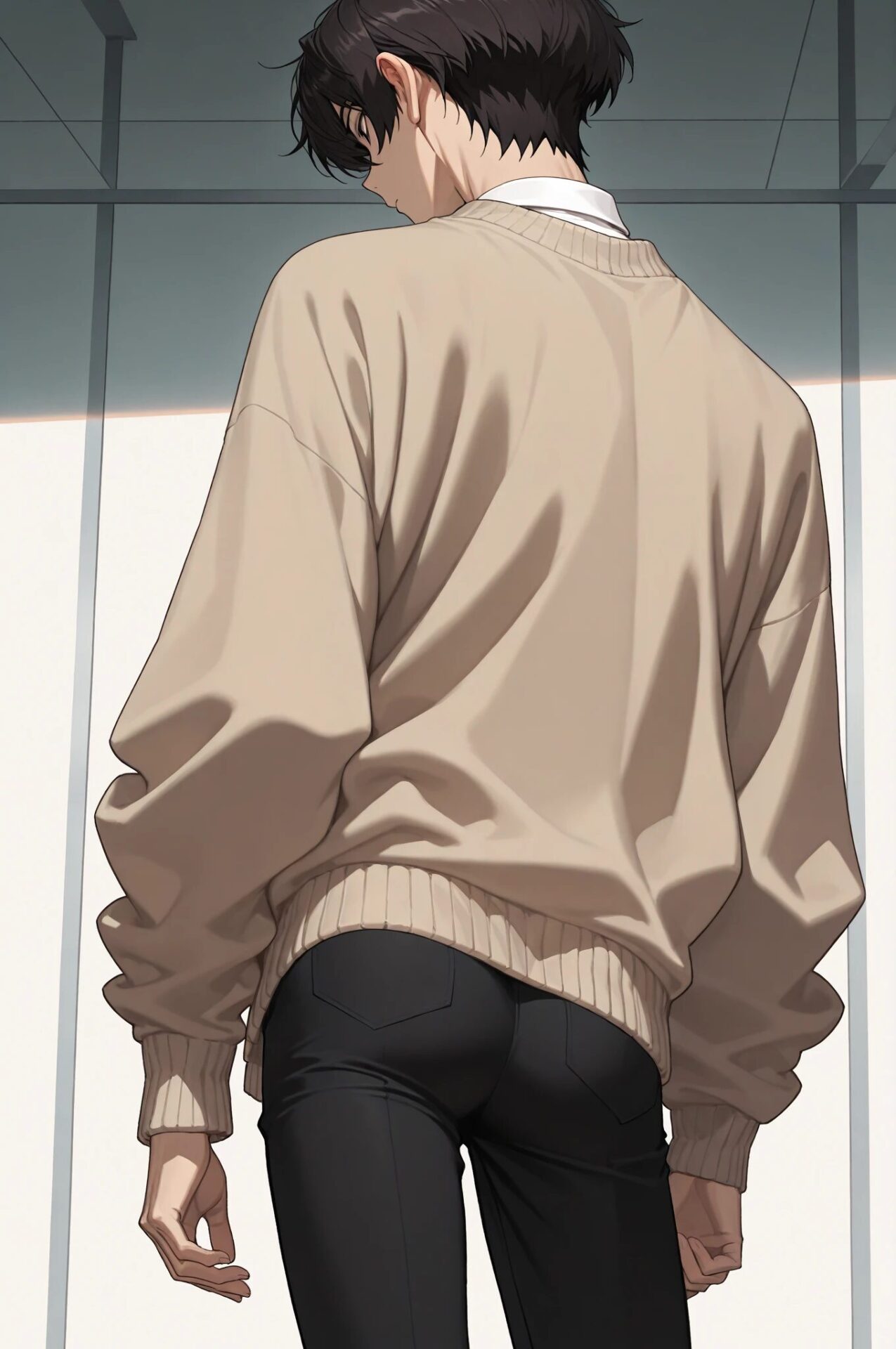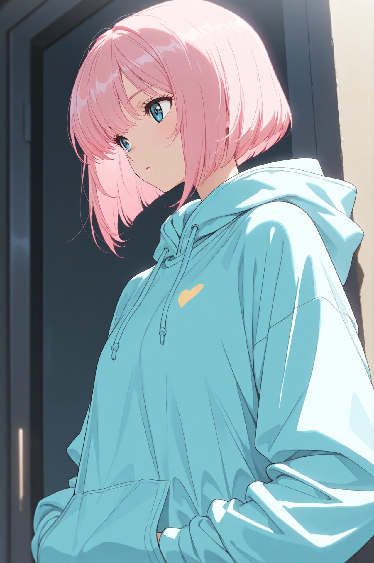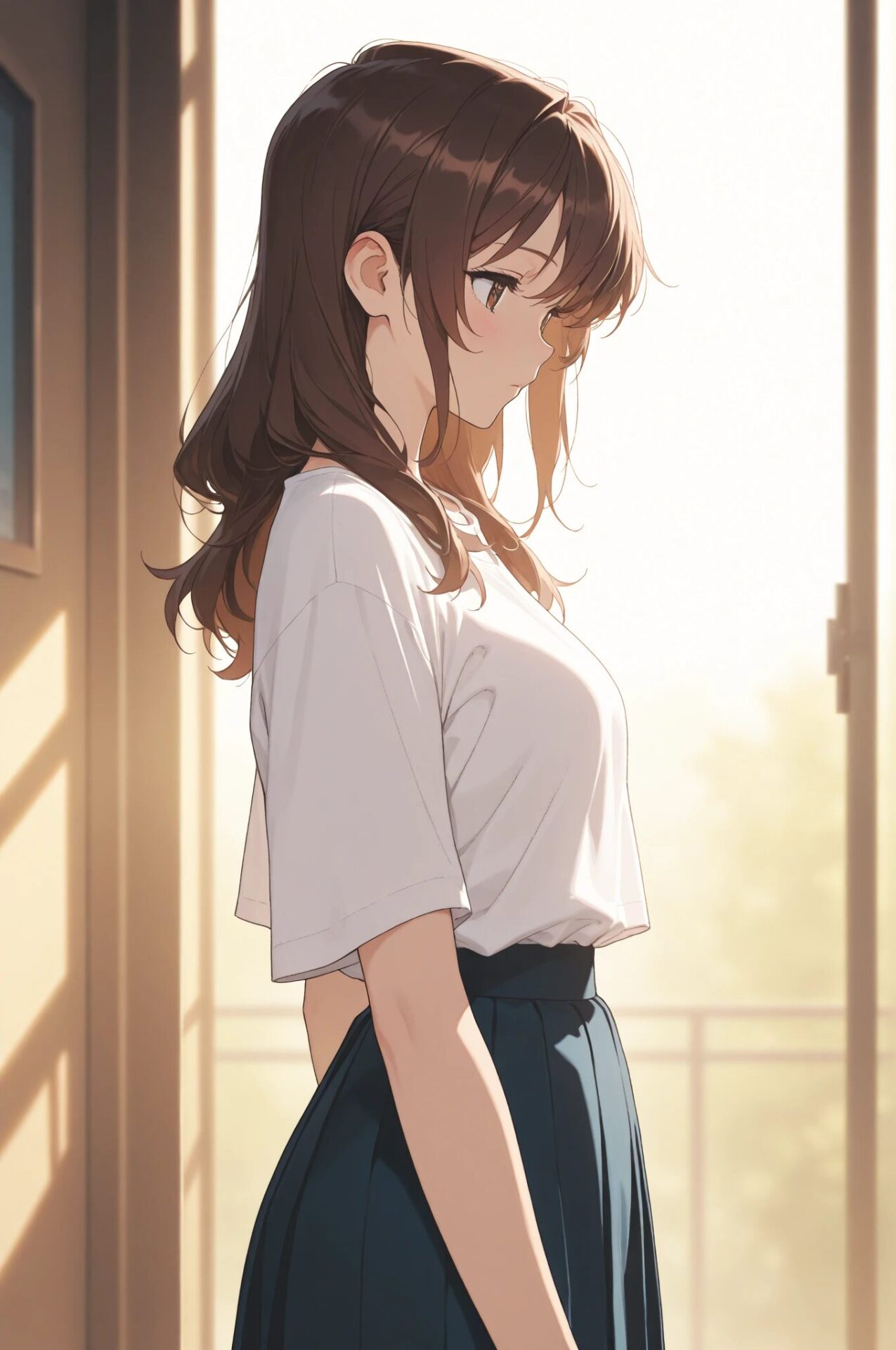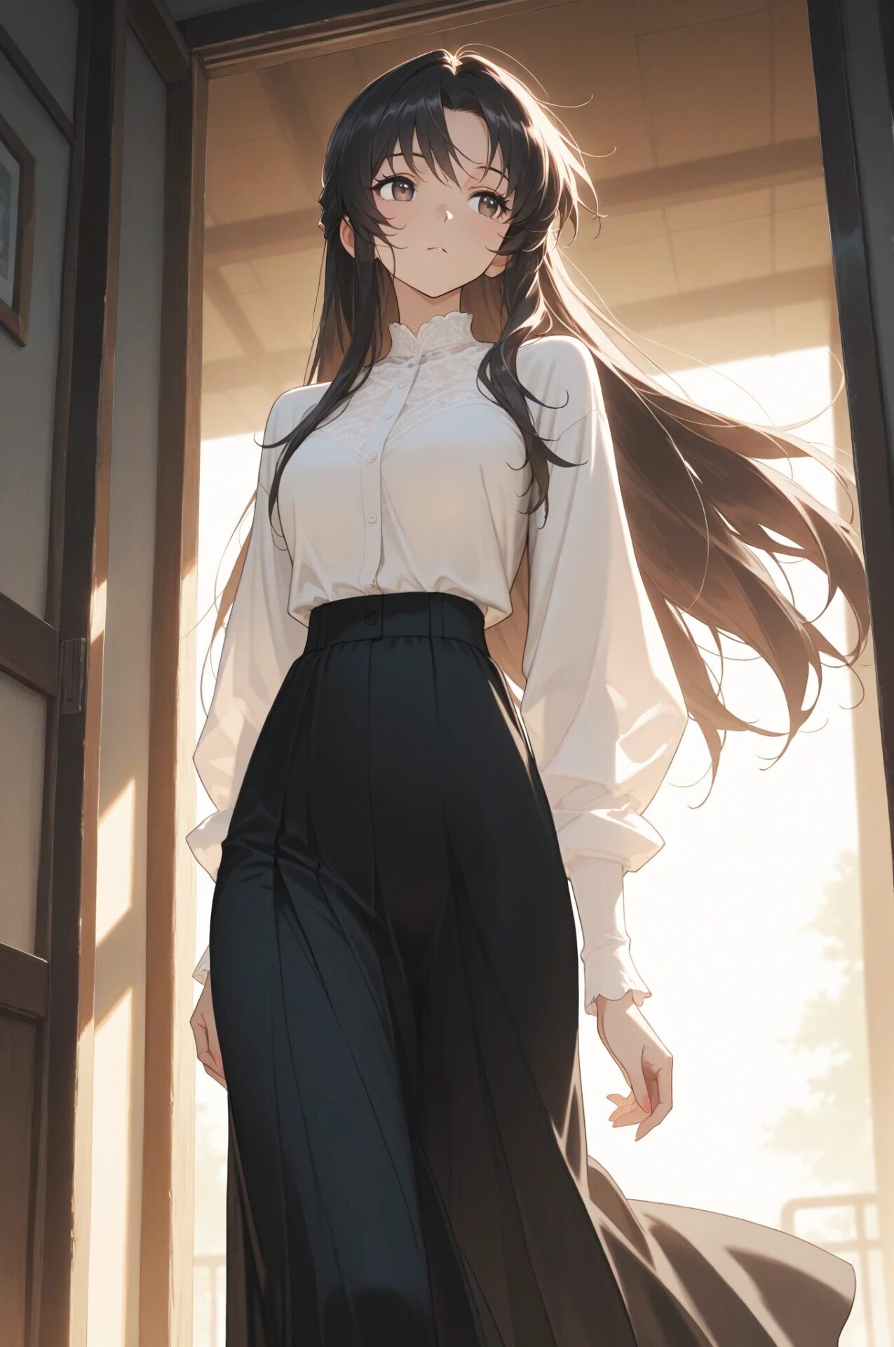 1girl, winter outfit, long coat, turtleneck sweater, snowing, soft lighting