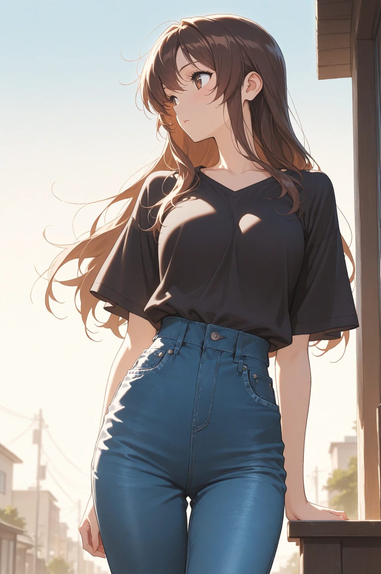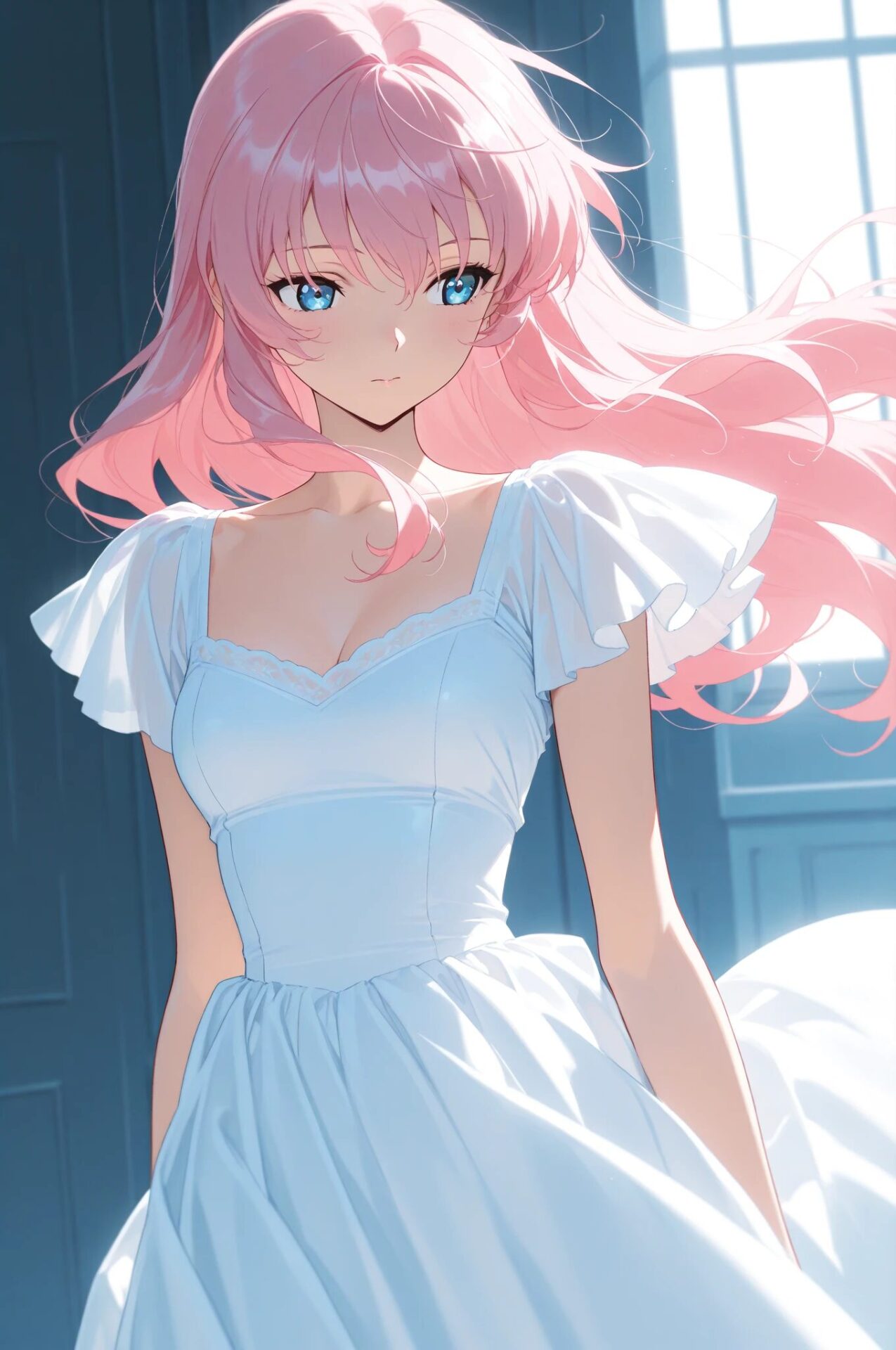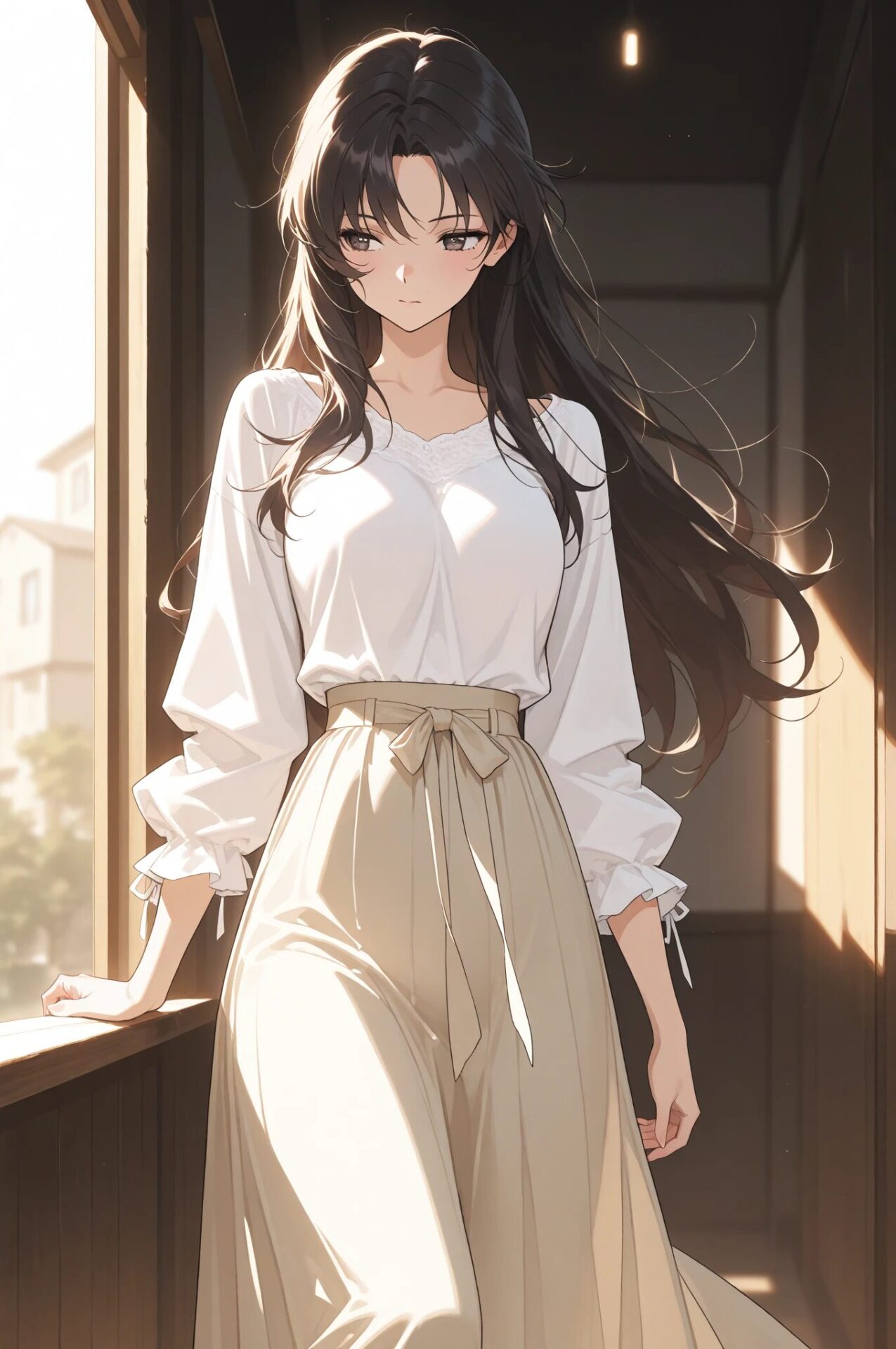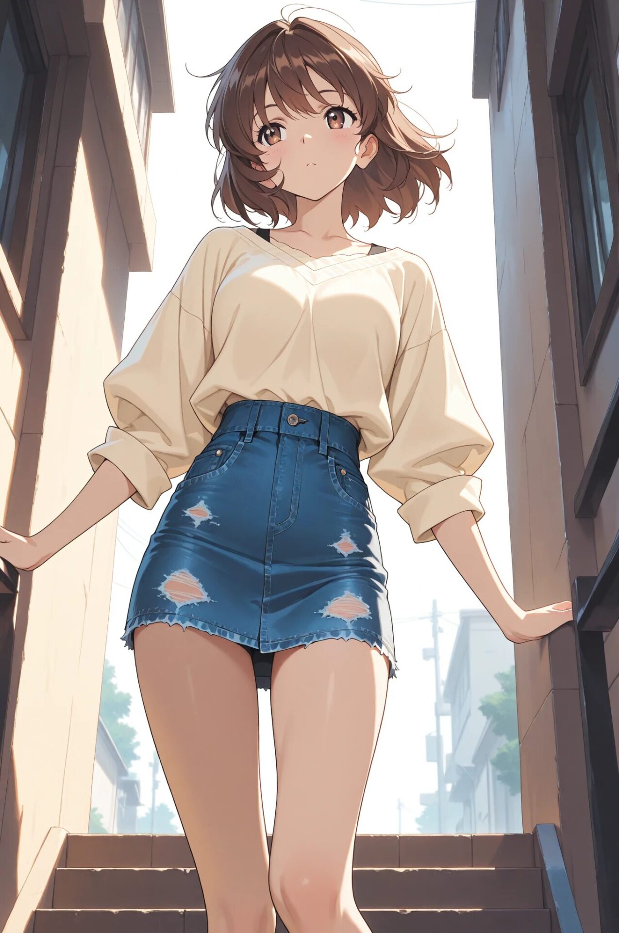 1girl, summer outfit, sundress, sandals, sunlight, beach background
