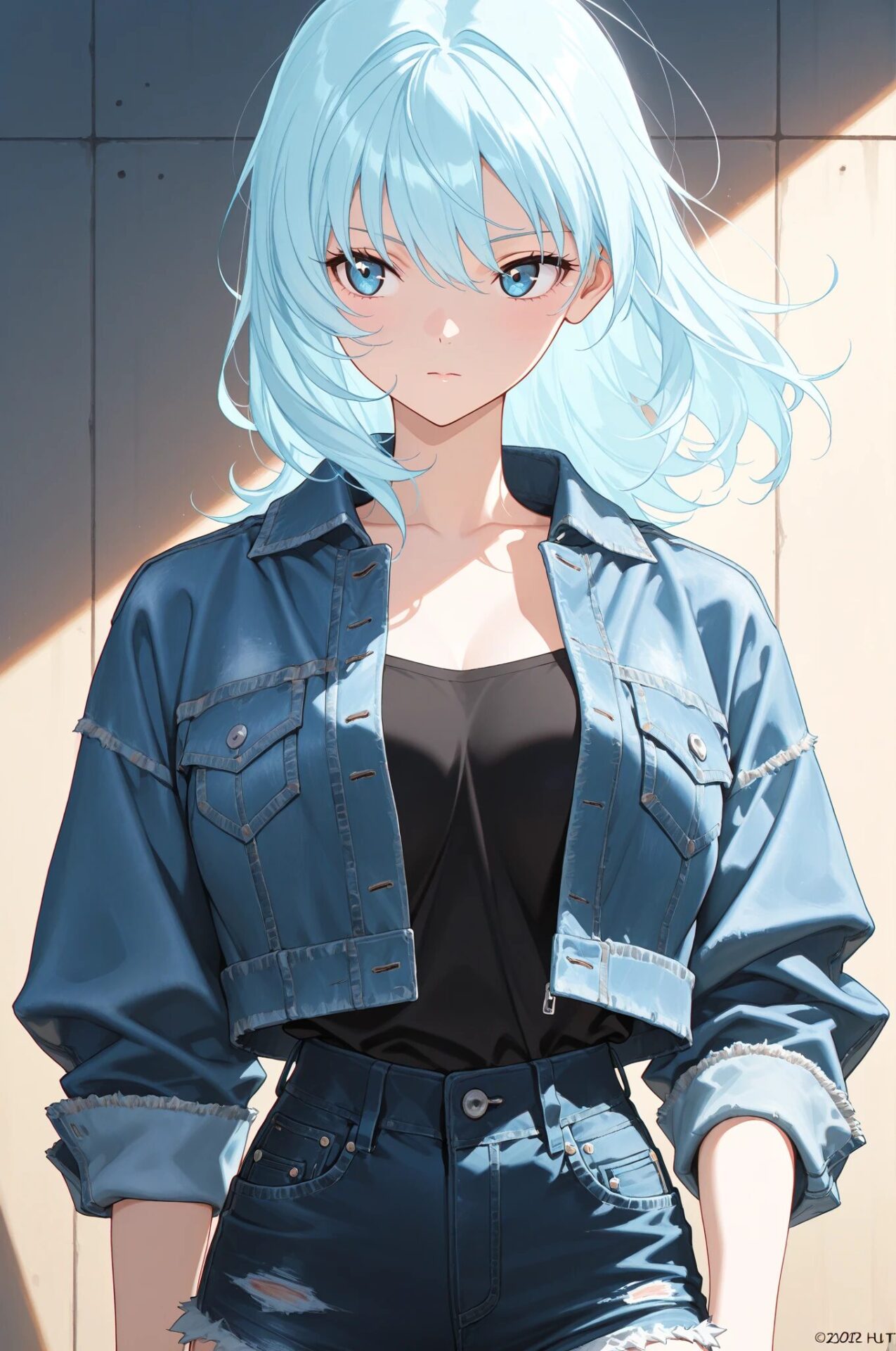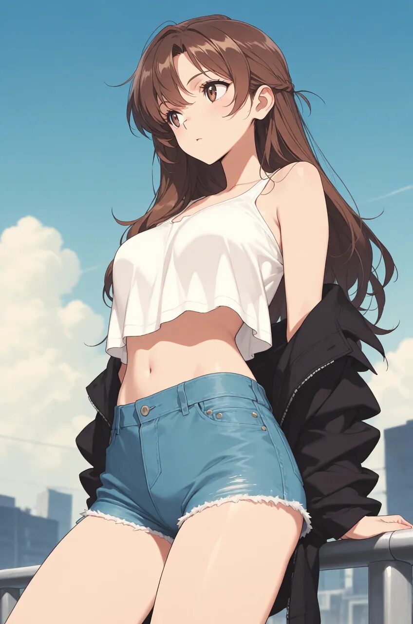 crop top, denim shortsクロップトップ+デニムショート