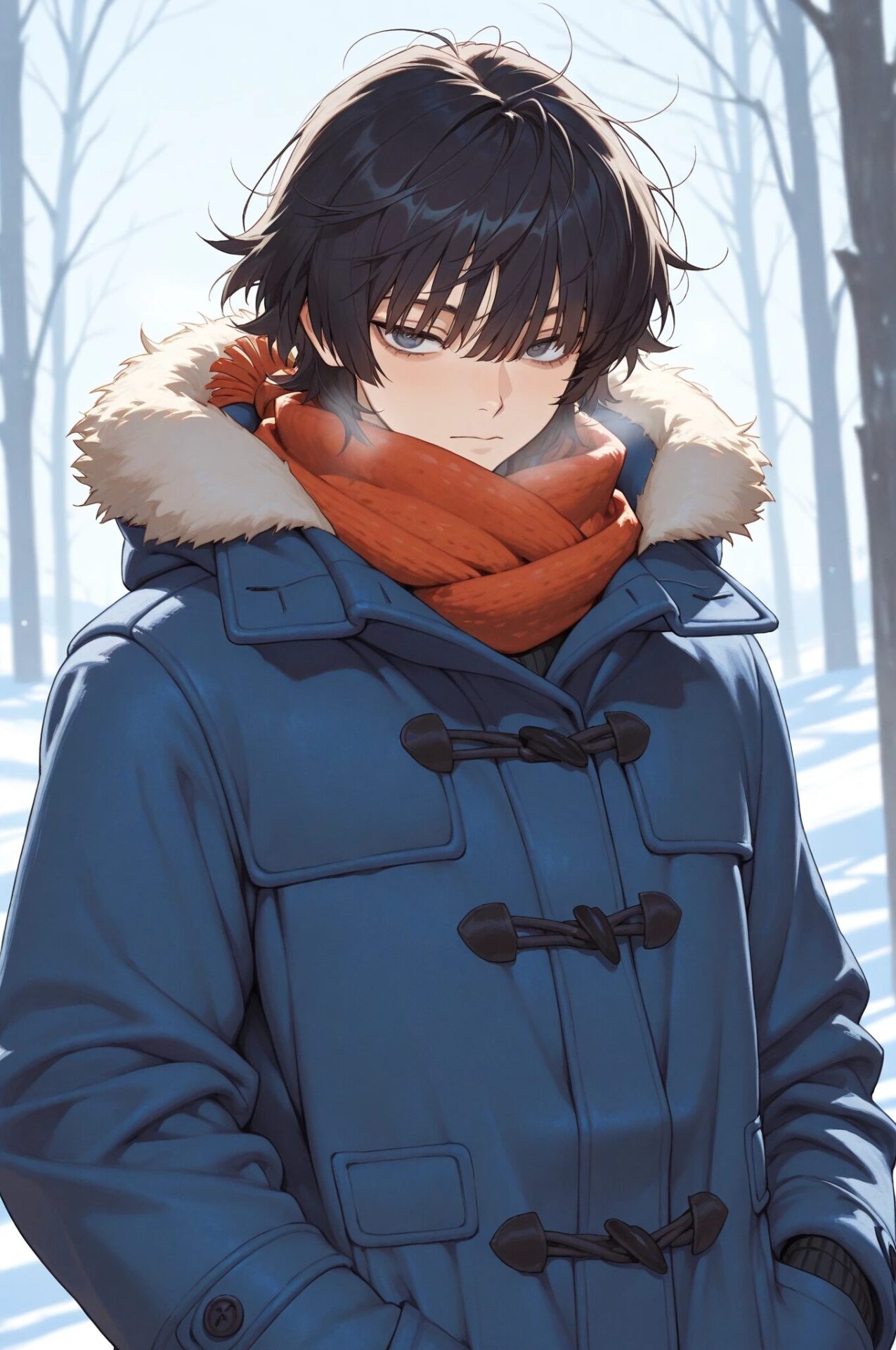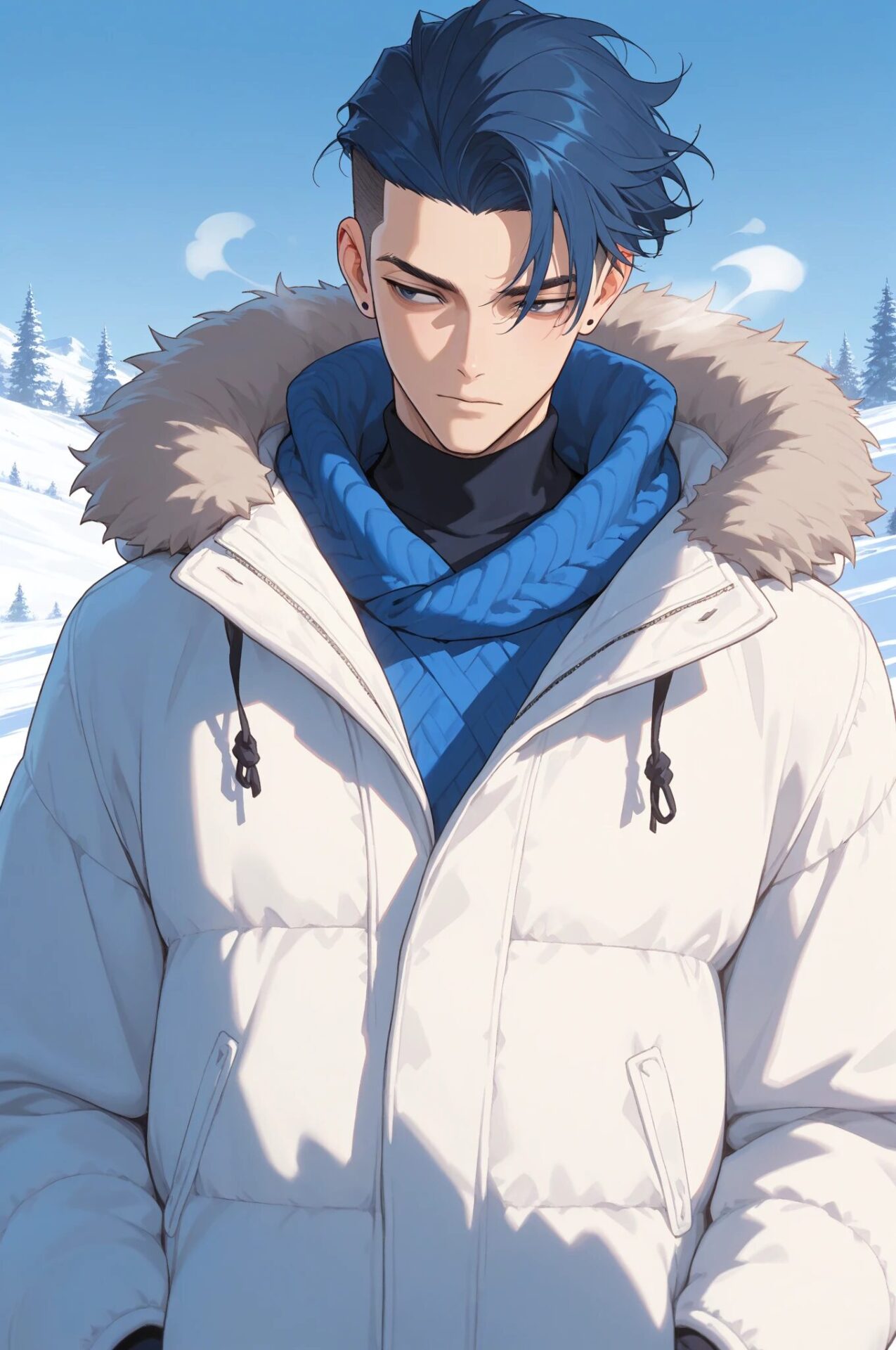 snow background, winter outfit冬コーデ+雪背景