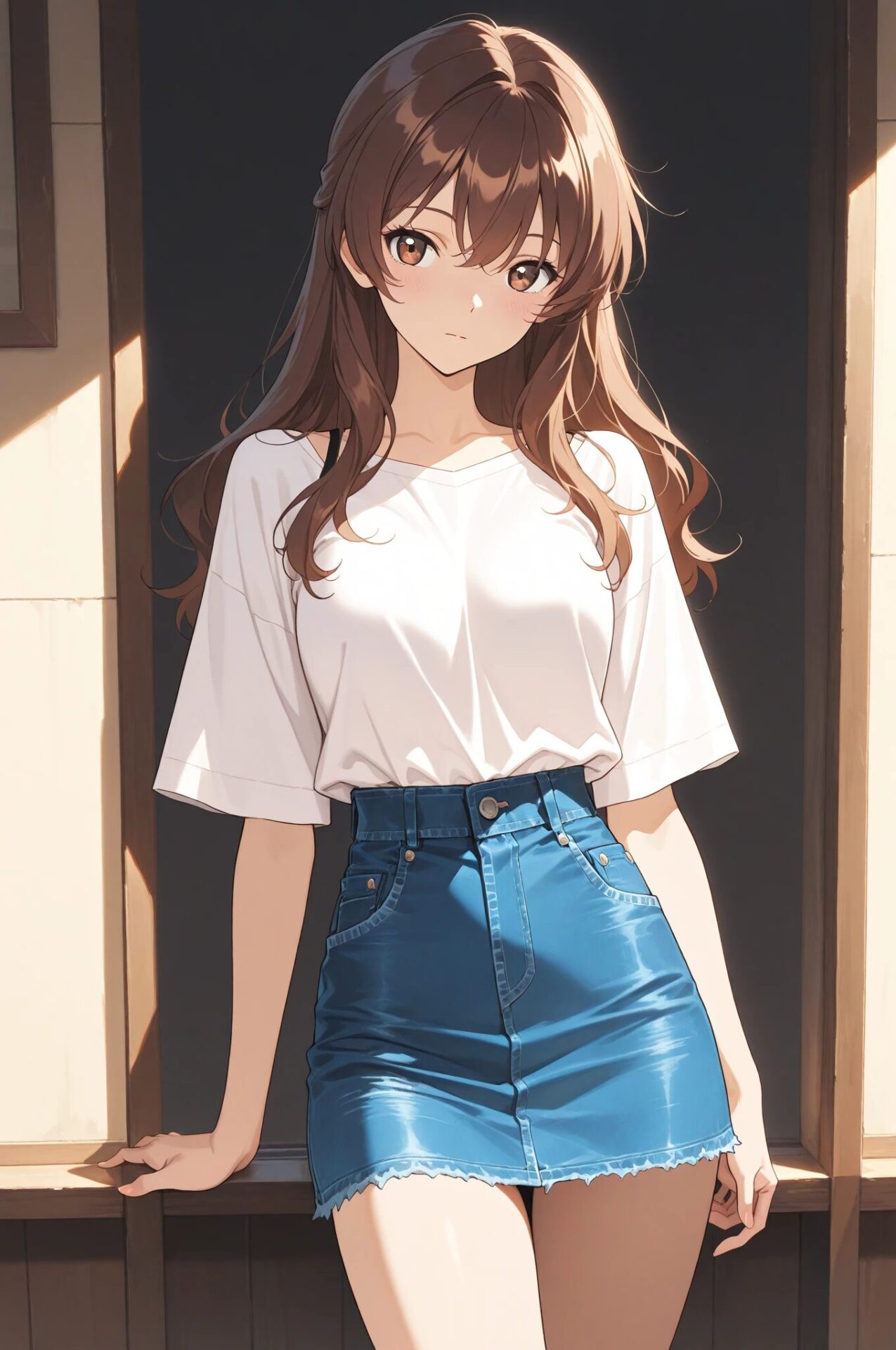 denim jacket, white t-shirt, long skirtデニムジャケット+白T+ロングスカート