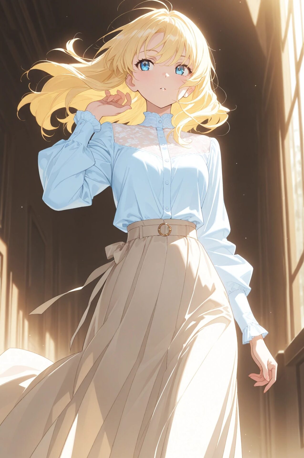 pastel blouse, pleated skirtパステルブラウス+プリーツスカート